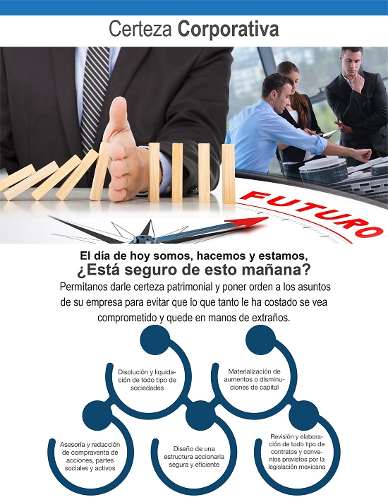 Una de nuestras principales metas es ser la firma de abogados especialistas en derecho corporativo que le de soporte a la empresa con la finalidad de suprimir las eventualidades a causa del cumplimiento de la legislación mexicana.